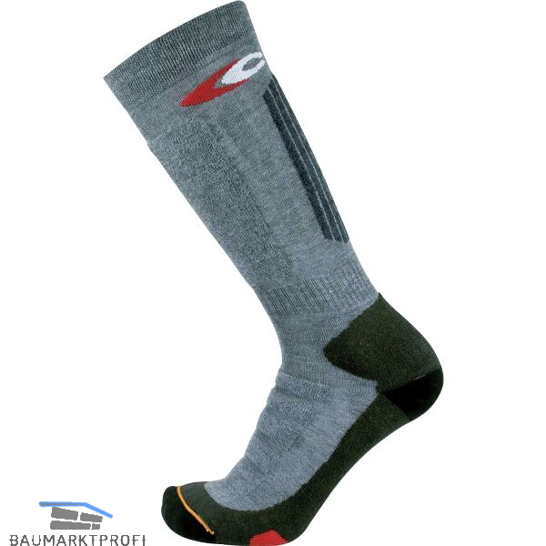 Stutzen mit verstärkter Spitze, Glattnaht, antistatischer Einsatz, verstärkte Ferse, gefütterter Knöchel und Achilessehne, Ristfütterung um den Druck der Schnürung auf dem Rist zu reduzieren.