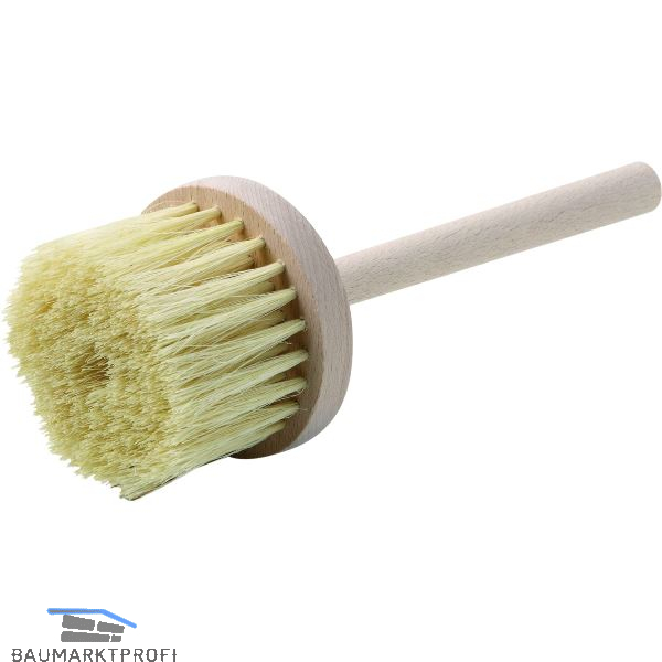 Teerscheibe aus natürlicher Pflanzenfaser, Holzkörper und Stiel roh.