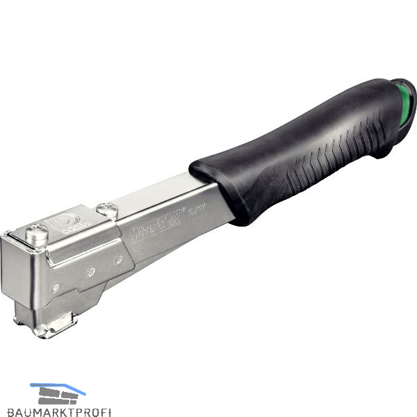 Der Hammertacker aus Stahl für echte Profis. Neue, schnelle Befüllung. Das Magazin wird mit einem leichten Druck auf den Knopf geöffnet. Ergonomischer Griff mit rutschhemmender Beschichtung, kraftsparende Rückstoßtechnik, drehbarer Doppeltreiber für doppelte Lebensdauer, Prallplatte zum Schutz der Materialien. Ein neu entwickeltes, ausgeklügeltes Ladesystem stellt sicher, dass beim Befüllen des Klammermagazins keine Teile herausfallen können.