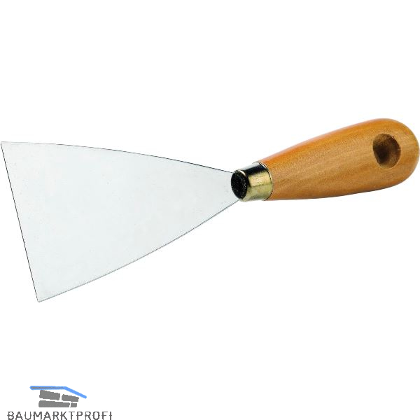 Gut federnd, Holzgriff lackiert. Für Maler- und Ausbesserungsarbeiten.