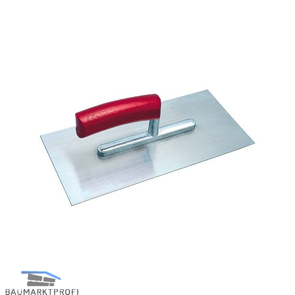 Aus rostfreiem Stahl mit gebogenem Holzgriff.