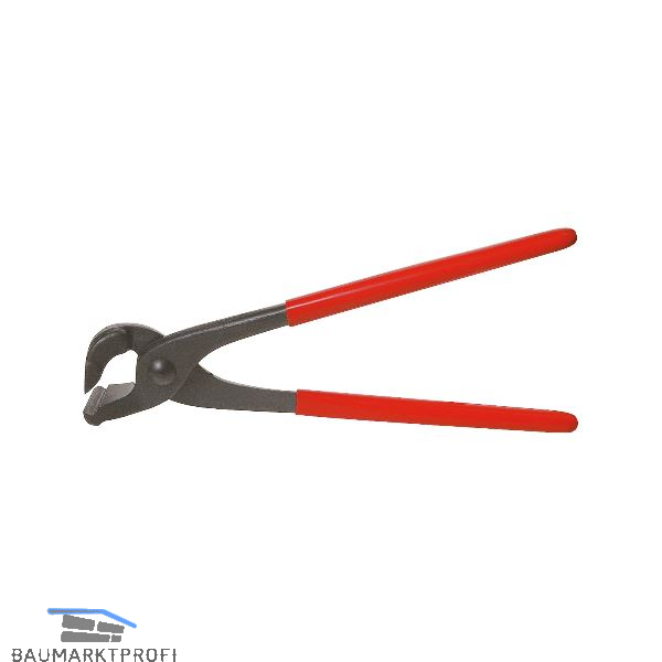 Spezialzange, geschmiedet, aufgelegtes Gewerbe, Schenkel rot kunststoffbeschichtet, zum schnellen Öffnen von Steh- und Doppelfälzen, Oberbacke mit Schneide, Unterbacke mit Prisma. Werkstoff: C45 Kohlenstoffstahl