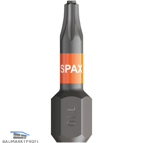 Spax Bit-Einsatz mit Zapfenführung überzeugen durch Passgenauigkeit, bessere Kraftübertragung sowie optimale Werte der Härte und Drehmomentübertragung und hohe Standzeiten. Passend für originale Spax Schrauben.