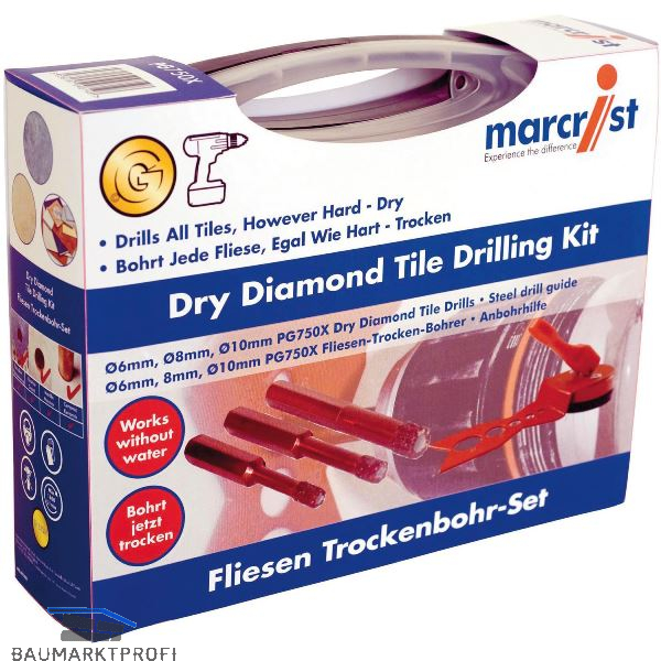 Vakuum-diamantbeschichteter Hochleistungs-Fliesenbohrer für den extremen Dauereinsatz. Er liefert lupenscharfe Löcher in den unterschiedlichsten Größen - ganz einfach, ohne Ausrisse, ohne Beschädigung, selbstkühlend und selbstschärfend daher keine Kühlpausen. Zum Trockenbohren in jede Fliese, Feinsteinzeug, Granit, Marmor, Keramik oder Terracotta.