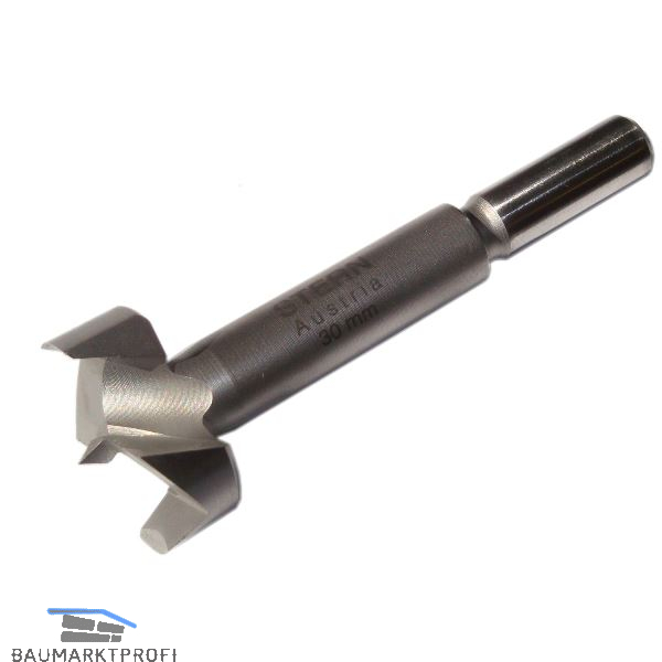 Mit Zentrierspitze, zwei Vorschneider, zwei Hauptschneiden und abgesetztem zylindrischen Schaft zum Gebrauch in elektrischen Handbohrmaschinen und Stationärbohrmaschinen.