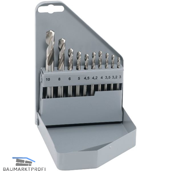 Mit Spiralbohrern HSS-ECO-PZ. 5% kobaltlegierter Spiralbohrer mit verstärktem Kerndurchmesser, Zylinderschaft. Besonders geeignet für zähe und harte Werkstoffe wie rost- und säurebeständige Chrom-Nickelstähle. Durch die kurze Bauweise sehr gut für Handbohrmaschinen geeignet. Kein Ankörnen, durch Spezialanschliff. In Kassette aus Stahlblech, lackiert.
