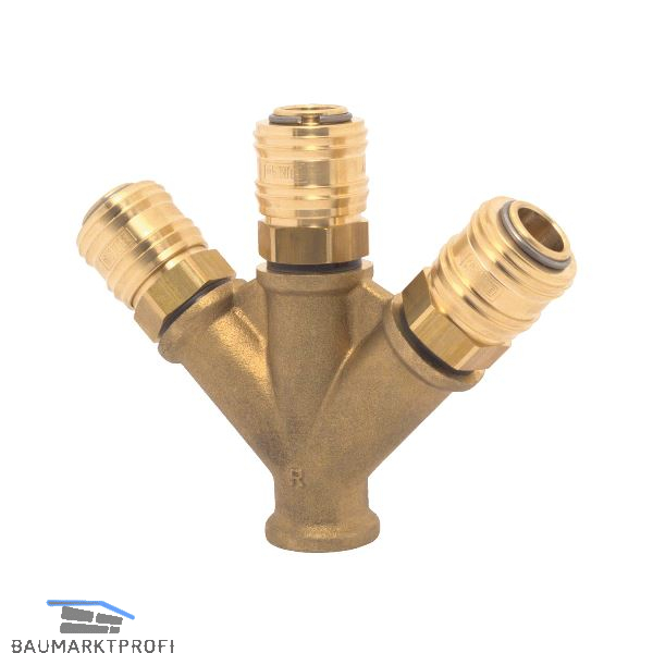 Druckluft Verteiler Messing mit IG 3/8" und 3 Euro Kupplungen