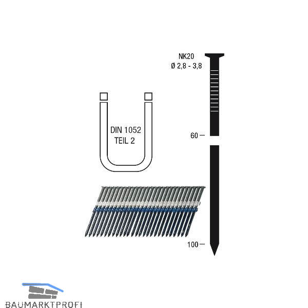 Nagelstreifen NK20 3,1 x 90 mm HBK blank geharzt Kunststoffgebunden 20 Grad