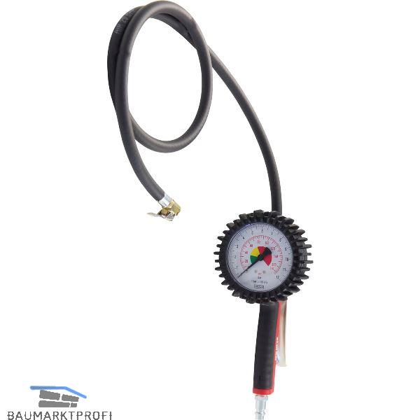 Kunststoffhandgriff mit Gummi-Schutzkappe, Präzisions-Manometer 0-12 bar, Momentstecknippel. Luftanschluss: G 1/4".