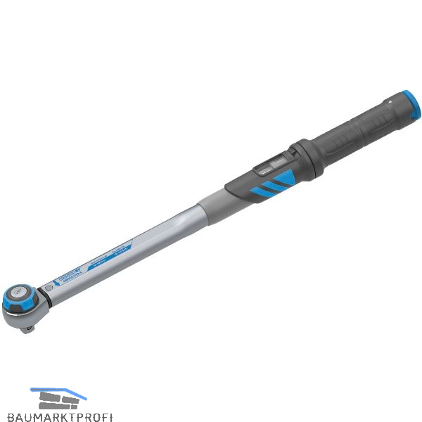 Verstellbarer, auslösender und robuster Rohrdrehmomentschlüssel mit integrierter Knarre mit Vierkantantrieb. Kalibriert nach DIN EN ISO 6789:2003 Typ II Klasse A, mit einem rückführbaren Werkszertifikat auf eine zulässige Abweichung von +/- 3 % und besser. Kontrollierter Rechts- und Linksanzug, 2-Komponenten-Kunststoffgriff mit Kalibrierhilfe, Umschaltung zwischen Hauptskala Nm und Nebenskala lbf-ft, zur Vermeidung von Ablesefehlern bei der Einstellung des gewünschten Drehmomentes. Absprungsystem erzeugt ein fühl- und hörbares Auslösesignal