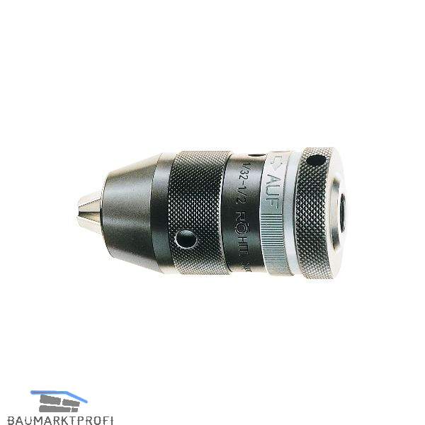 Schlagbohrfestes, schlüsselloses Schnellspannbohrfutter für Schlagbohrmaschinen aller Fabrikate. Unfallsicher durch Spannkraftsicherung. Öffnen des Futters selbst bei starker Vibration und hoher Schlagfrequenz unmöglich. Futter gegen Bohrstaub und Verschmutzung abgedichtet. Selbsttätiges Nachspannen beim Bohren proportional zur Spannkraft. Dadurch Erhaltung der Spannkraft bei hartem Einsatz.