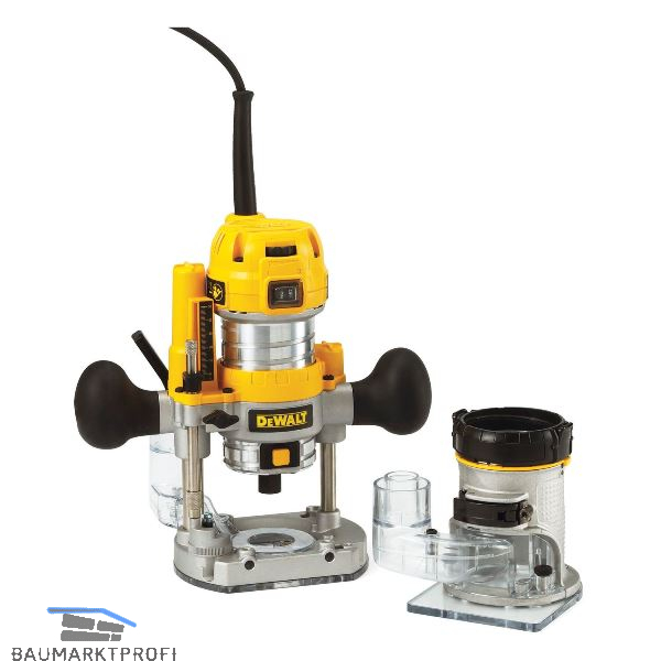 Kombi-Gerät aus Oberfräse und Kantenfräse für äußerst vielseitigen Einsatz. Einfache und schnelle Fixierung des separaten Motorblocks wahlweise in der Tauch- oder Kantenfräseinheit. Robustes, kompaktes und ergonomisches Design. Absaugvorrichtung mit Adapter für effiziente Staubabsaugung. Sanftanlauf, 5-stufige Frästiefenvorwahl (nur Taucheinheit) sowie exakte Frästiefen-Einstellung (bei Kantenfräseinheit mittels praktischem Einstellring). Elektronik und Drehzahl-Konstanthaltung. Optimale Sicht auf das Werkstück durch transparente Grundplatten und zwei leistungsstarke LED-Leuchten. Spindelarretierung für einfachen und schnellen Fräserwechsel.