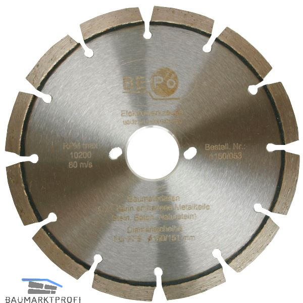 Marke: BEPo Anwendung: Putz, Heraustrennen von Altfensterrahmen durch Schnitte in Putz, Beton, Fliesen, Stein, Befestigungslaschen aus Metall Material: Diamant Sägeblatt ø (mm): 150