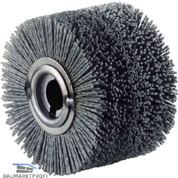 Elastische, korndurchsetzte Rundbürste zum Aufrauen und Entgraten von Metallen, für Rustikaleffekte an Holz.