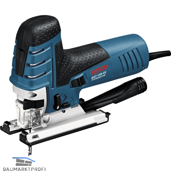 Lieferung inkl. 1 Stichsägeblatt, Abdeckhaube, Absaug-Set, Gleitschuh, Spanreißschutz, Saugdüse, im Handwerkerkoffer.