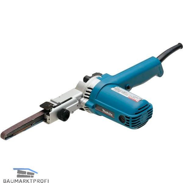Lieferung inkl. 2 Schleifbänder Korn 80, Absaugadapter, 9 mm Führungsarm eingebaut, im Karton.
