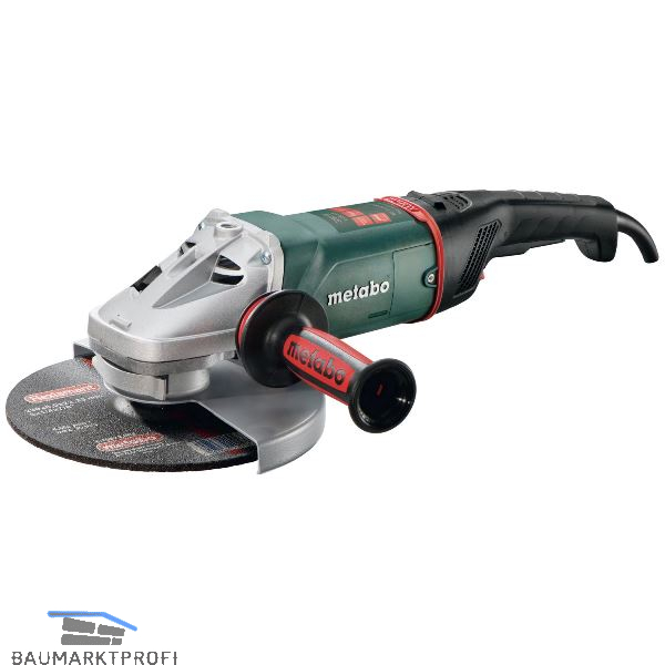 Robuster Metabo Marathon-Motor mit patentiertem Staubschutz, Sicherheitsschalter gegen unbeabsichtigtes Einschalten, Anlaufstrombegrenzung mit Sanftanlauf, Elektronische Sicherheitsabschaltung des Motors beim Blockieren der Scheibe, Wiederanlaufschutz. Elektronischer Überlastschutz, LED-Signal bei ausgelöstem Wiederanlaufschutz oder Überhitzung. Werkzeuglos verstellbare Schutzhaube, verdrehsicher fixierbar. Integriertes Dämpfungssystem Metabo VibraTech (MVT), Haupthandgriff drehbar und Zusatzhandgriff an 3 Positionen montierbar, Abschaltkohlebürsten.