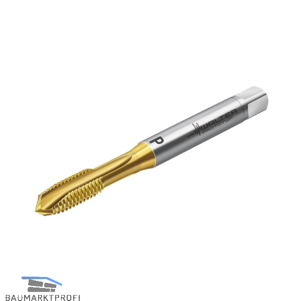 Ausführung: Anschnitt-Form B, 3,5-5 Gänge, gerade genutet mit Schälanschnitt. Anwendung: Universeller Gewindebohrer für Durchgangsgewinde in Werkstoffen bis ca. 1000 N/mm². TiN-Beschichtung zur Steigerung von Standzeit und Schnittgeschwindigkeit.