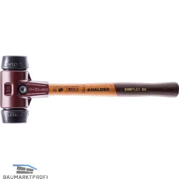 HALDER Schonhammer Temperguss Kopf ø 50 mm Gummi schwarz Hickory Stiel