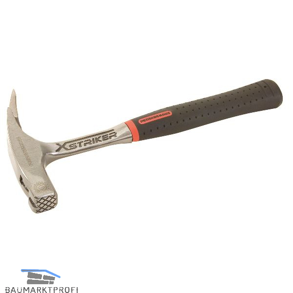 Durchgehend aus Stahl geschmiedet, mit magnetischem Nagelhalter, ganz poliert, mit Kunststoffgriff.