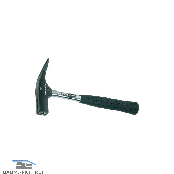 Mit angeschliffenem Nagelzug und angeschliffener Spitze. Kopf schwarz lackiert mit Kopfsicherung und Nagelhalter mit Magnet. Stahlrohrstiel mit Stahlring für verbesserten Schutz und Kunststoffgriff.