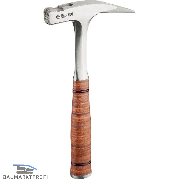 Ganzstahl, mit Ledergriff aus echtem Kernleder und magnetischem Nagelhalter. Aus hochwertigem Vergütungsstahl gefertigt. Mit gerauter Bahn.