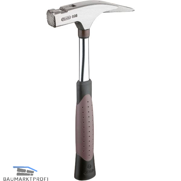 VPA/GS geprüfter Lattenhammer mit Kopfsicherung und magnetischem Nagelhalter, für höchste Ansprüche, Hammerkopf fein blank, Klaue und Spitze besonders gehärtet, mit hohem Auge. Ergonomischer, schwingungsdämpfender 2-Komponenten-Griff braun/schwarz. Geraute Bahn.