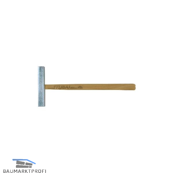 Mit Holzstiel, Kopf seitlich hohl geschliffen.