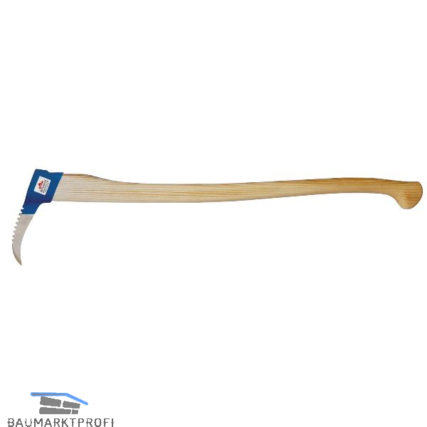 Mit Schneidrücken aus Stahl geschmiedet, Spitze gehärtet, geschliffen, poliert und lackiert, konisches Haus für guten Stielsitz. Mit Eschenstiel.