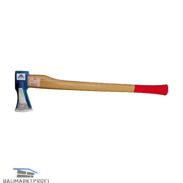 Neuartige Spaltaxt mit Keilstegen für höchste Spaltleistung zum Aufarbeiten von Kamin- und Brennholz. Sauber im Gesenk geschmiedet, geschliffen, poliert und lackiert, mit Eschenholzstiel.
