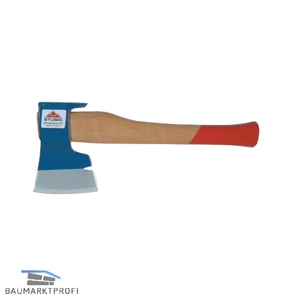 Geschmiedet, ballig geschliffen, poliert und lackiert, mit 380 mm Stiel aus zähem, langfasrigem Hartholz. Breite Form mit Nagelzieher.