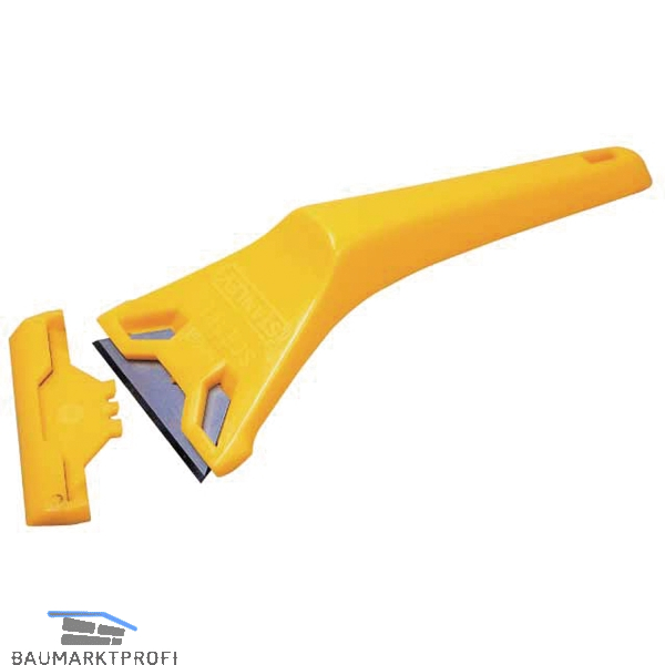 Aus Kunststoff gelb, mit extrastarker Klinge Type 1992 und einem abnehmbaren Klingenschutz.Zum Entfernen von Farbe und Aufklebern auf Glas.