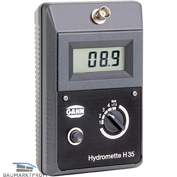 Elektronischer Holzfeuchtemesser mit LCD-Digitalanzeige (Ablesegenauigkeit 0,1%) für Präzissionsmessungen von Schnittholz (bis 180 mm Stärke), Spanplatten und Furniere durch Einzelmessungen vor und nach der Verarbeitung. Holzsorten-Umschaltung zur automatischen Messwertkorrektur von über 300 Holzarten. Vollautomatischer Geräteabgleich.