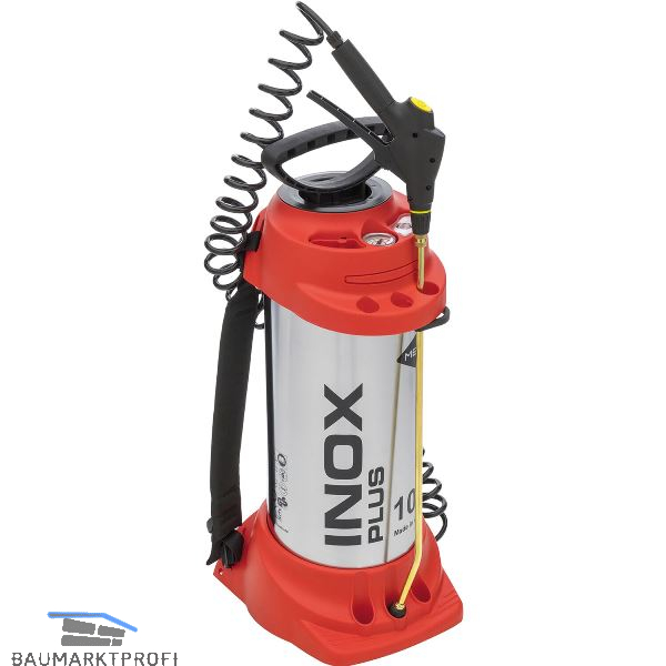 Für den Einsatz im Baugewerbe, Reinigungsgewerbe und zur professionellen Schädlingsbekämpfung. Behälter aus Edelstahl rostfrei, rückentragbar, gepolsterte Trageriemen, Dichtungen FPM (Vitron®), Messing-Flachstrahldüse mit Feinfilter, Messing-Spritzrohr 50 cm, 360º drehbar, Spiralschlauch 2,5 m mit Sicherheitsverriegelung, Sicherheitsventil und Manometer austauschbar, Ersatzteilefach, Pumpenhalter, Spritz- und Verlängerungsrohrhalter, Trichterabdeckung, Schauglas zur Füllstandskontrolle.
