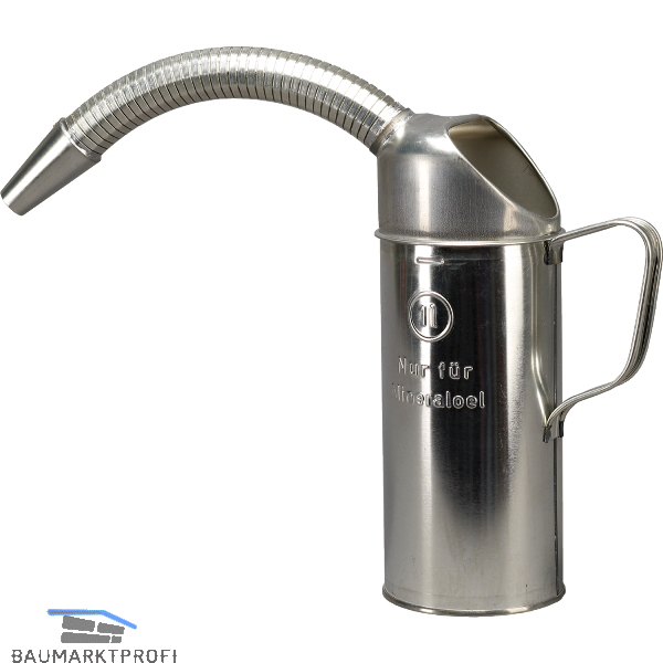 Messbecher aus Weißblech, flexibler Metallauslauf, ergonomischer Handgriff, Standfest, Oberfläche konserviert, nicht eichfähig.
