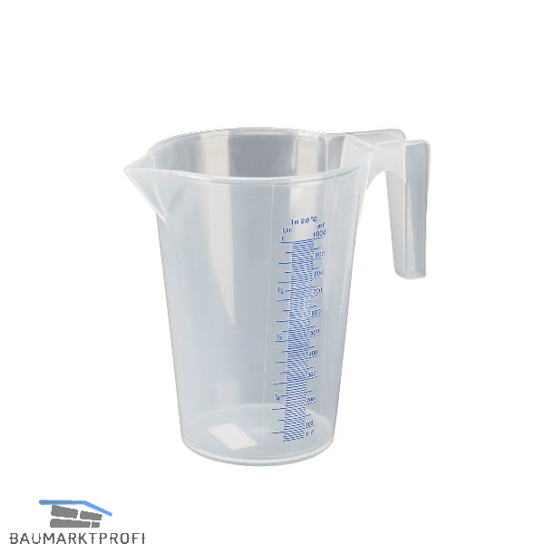 Messbecher aus Öl- und säurebeständigem Polypropylen. Lebensmittelecht, bruchsicher und standfest. Ausgießer und Maßeinteilung, mit Überlaufrand für sicheres Ausgießen.
