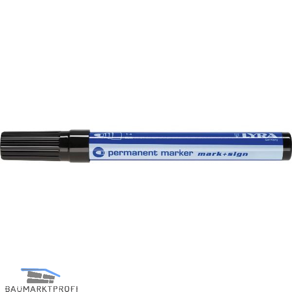 Permanentmarker, wasserfest, bestens geeignet für Markierungen auf allen glatten und porösen Oberflächen. Tinte schnell trocknend und schwer entfernbar. Frei von Xylol und Toloul. Stifte mit Folienversiegelung. Strichbreite 1 - 4 mm. Mit runder Spitze.