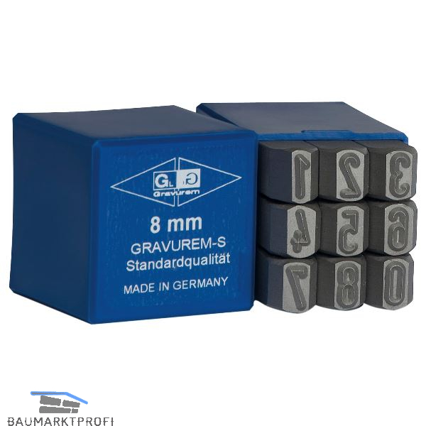 Zum Einschlagen in Werkstücke mit einer Festigkeit 120 kp/mm². Schriftbild nach DIN 1451. Mit Sichtgravur in bruchsicheren Kunststoffdosen.