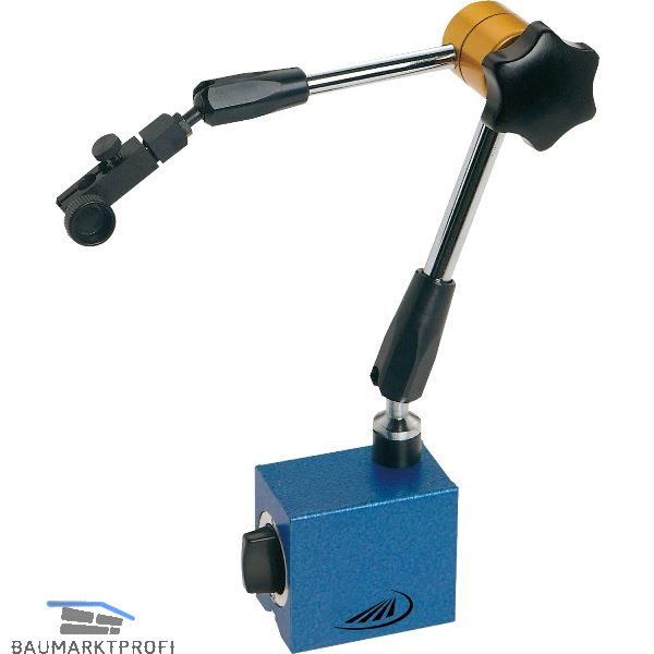 Mit Messuhr-Feineinstellung. Durch die Zentralklemmung kann dieses Gerät individuell wählbar stufenlos vorgespannt oder absolut starr festgestellt werden.Magnetfuß 70 x 46 x 65 mm.
