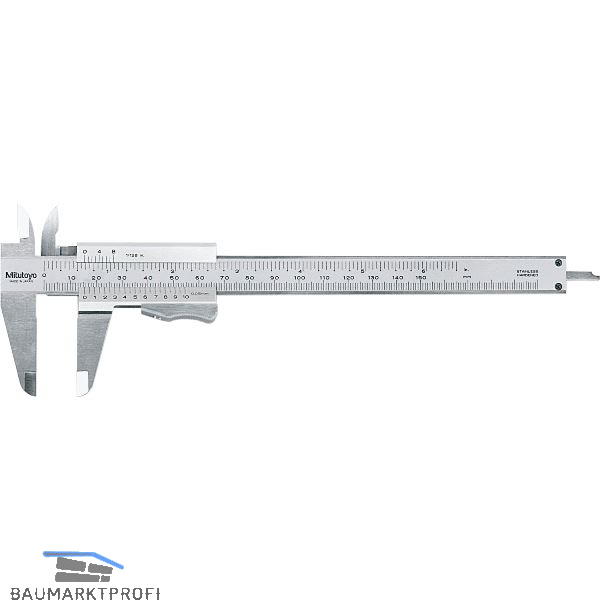 Schiene und Schieber aus nicht rostendem gehärtetem Stahl. Erhöhte Führungsbahnen. Maßstab und Nonius mattverchromt. Lieferung in Box.