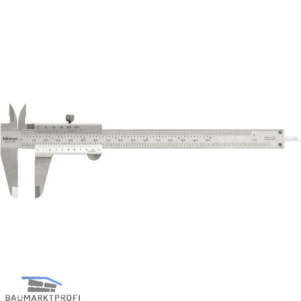 Schiene und Schieber aus gehärtetem, nichtrostenden Stahl. Maßstab und Nonius mattverchromt, erhöhte Führungsbahnen.