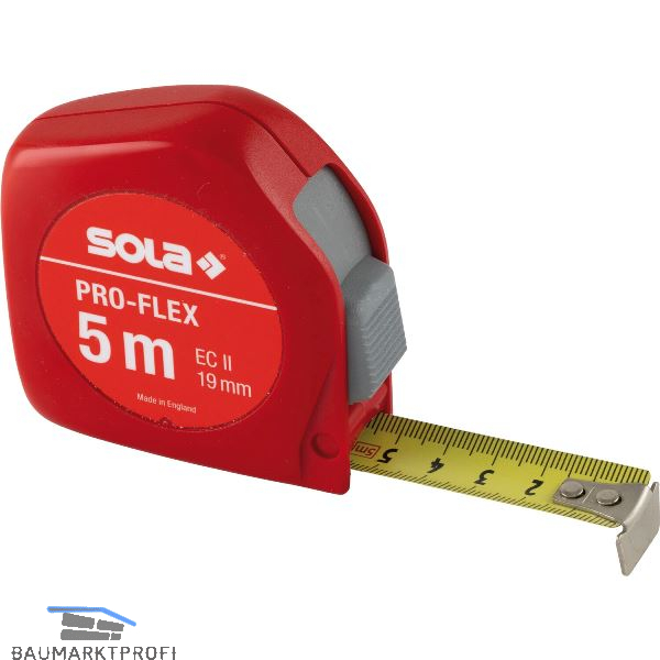 Stahlband gelb lackiert, Anti-Reflect beschichtetes Band, durchgehende mm-Teilung, Automatischer Bandeinzug, Rücklaufsperre.