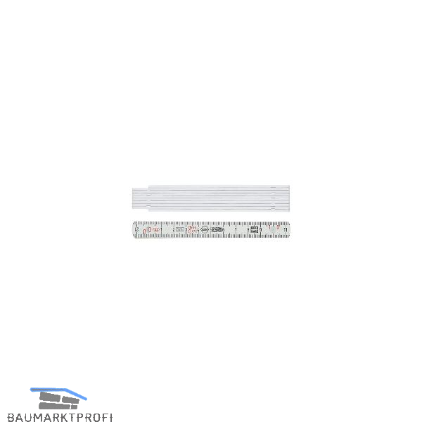 Fiberglas verstärktes Polyamid ist ritz-, kratz- und besonders biegefest. Gelenke auch rechtwinkelig einrastend, mit tiefgeprägter schwarzer Maßeinteilung in cm und mm, Zehner-Zahlen rot geprägt.