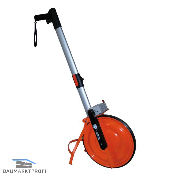 Dank der engen Fertigungstoleranzen des Präzisionsrads und des qualitativ hochwertigen Zählwerks erreicht das Messrad eine Genauigkeit von ± 0,02%. Dies entspricht einem max. Fehler von ± 2 cm auf einer Strecke von 100 m. Zählwerk in cm- Auflösung, stoßsicher über dem Laufrad montiert und wird mit einem Zahnriemen angetrieben, Nullstellung erfolgt mit Rückstellhebel, Feststellbremse im Abstellbügel integriert, ergonomischer Pistolengriff, seitlich wegklappbare Führungsstange aus Aluminium. Radumfang: 1 m,
