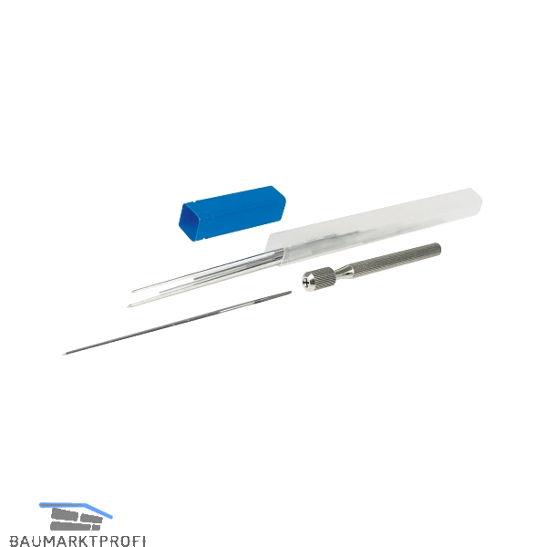 Kompletter Satz sortiert mit Halter in Metalletui. Zum Reinigen verstopfter Düsen.Reibahlen ø von 0,6 - 1,9 mm.