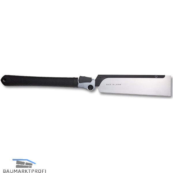 Japanische Handsäge mit hochwertigem Kunststoffgriff. Sägeblatt einklappbar, dadurch platzsparend bei gleichzeitigem Schutz der Zahnung. Feinsäge mit Rücken, sehr feine Verzahnung, besonders geeignet für Absetzschnitte und präzise Holzverbindungen. Ideal für Zinkenverbindungen.