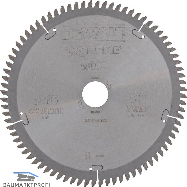 DEWALT Kreissägeblatt HW ø 216x2,6x30mm Z80 Trapezzahn/Flachzahn (TR/FZ) negativ