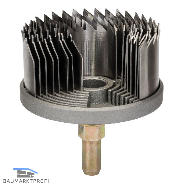 Verzahnung mit grobem Schnittbild und raschem Bohrfortschritt. Fest verbundener Aufnahmeschaft mit Grundkörper, besonders robust und optimaler Rundlauf. Bestens geeignet für Holz und Kunststoff.