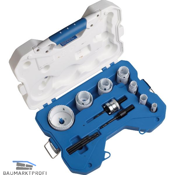 Inhalt: Lochsägen Gr. 16 / 19 / 22 / 25 / 29 / 32 / 35 / 38 / 44 / 51 / 68 / 76 mm,