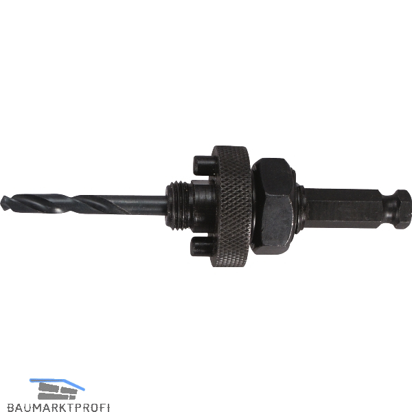 Komplett mit Zentrierbohrer, zur Aufnahme von Lenox Lochsägen. Mit Mitnehmerstift. Passend für Lochsägen HSS Bi-Metall und HM-bestückte Flachschnitt-Lochsägen.
